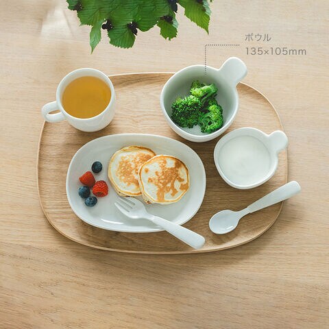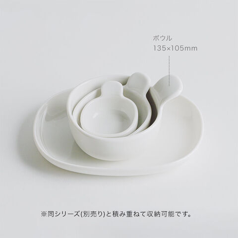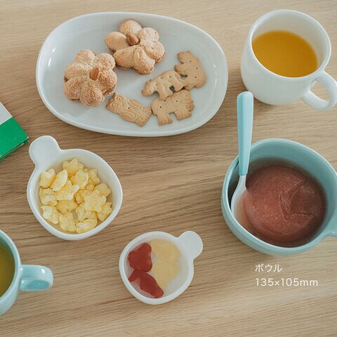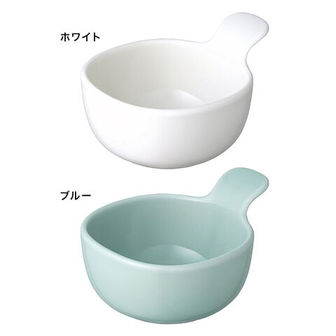 離乳食のスタート時から大人になっても長く使える、取手付きの磁器ボウル。