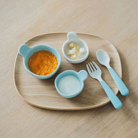離乳食スタート時から成長しても長く使える子ども用の食器セット。本品は大人の食器と同じような素材を採用。表面がなめらかで、汚れやニオイが染みつきにくいため、常に清潔な状態を保ちやすくなっています。また、初めての食器だからこそ、大人と同じ「本物の素材」に触れながら、食事の楽しさや大切さを感じてほしい。