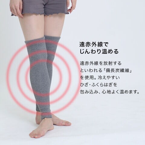 遠赤外線を放射するといわれる紀州備長炭繊維を使用。冷えやすいひざ・ふくらはぎを包み込み、心地よい温もりを届けます。