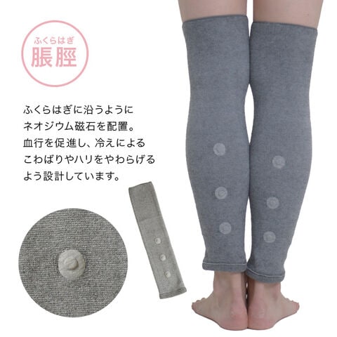ふくらはぎ部分にネオジウム磁石を配置し、血行を促進。冷えによるこわばりやハリをやわらげるよう設計しています。