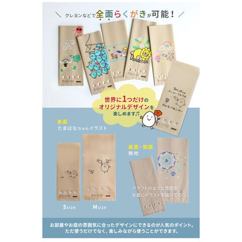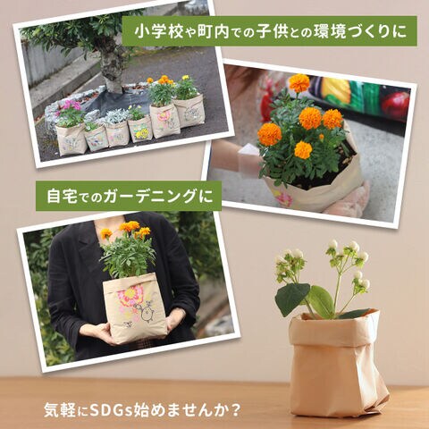 袋の表面は全面がクレヨンなどで自由にお絵描きができます。家庭での親子ガーデニング、学校・保育園での図画工作や環境学習、福祉施設でのリハビリやレクリエーションにもおすすめです。