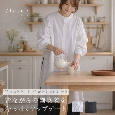 即納 【ギフト対応無料】 【ホワイト】 teine テイネ 割烹着(エプロン かっぽう着 和装 割烹着エプロン かわいい ロング 前開き 後ろボタン) ※1枚目の画像は代表イメージのため色・柄が異なる場合がございます。2枚目以降で色・柄をご確認下さい。