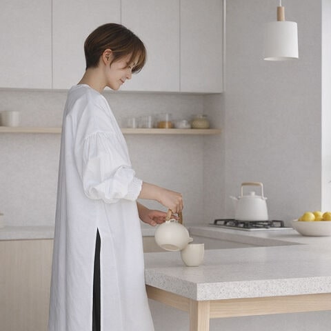 ・家事の時間はもちろん、来客時や改まった場面でも自然に着用できます。