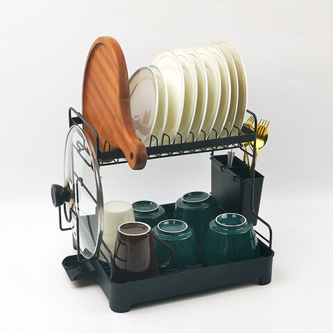 コンパクト水切りラック(食器 水切りラック 2段 大容量 水切りかご 水切りカゴ ラック 水切り 食器かご 食器カゴ)【ブラック Ki-30212】※1枚目の画像は代表イメージのため色・柄が異なる場合がございます。2枚目以降で色・柄をご確認下さい。