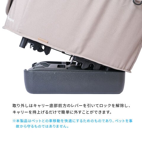 【注意】※ペットとの車移動を快適にするためのものであり、ペットを事故から守るものではありません。※本製品を長期間車に装着したままにすると、熱と圧力により車のシートに受台カバーの色素が移る場合があります。特にシートの素材が本革・合皮シートの場合は、車のシートと本製品の間に薄い生地を挟んでご使用ください。