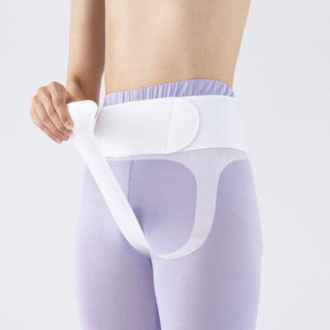 垂れさがった膀胱を、加圧パッドとベルトで正常な位置に保持する一般医療機器ベルト。