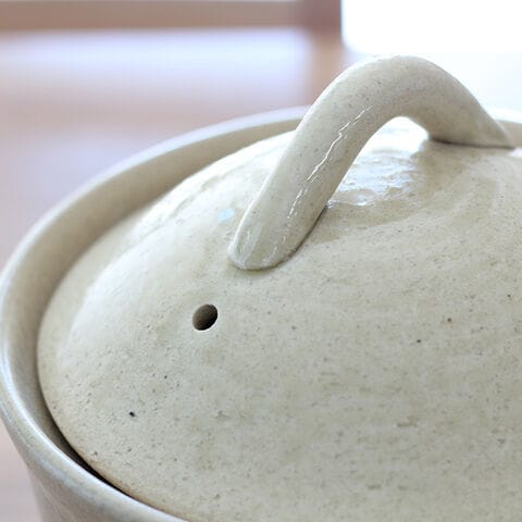 粗めの土を使用した、素朴な風合いのある萬古焼の炊飯用土鍋です。