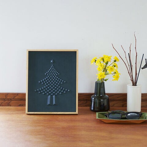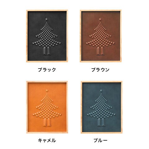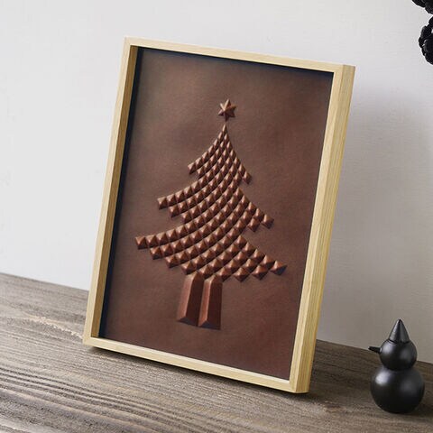 シンプルでモダンなインテリアにマッチする、レザー製のクリスマスアート。棚に立てかけておくだけでOK。