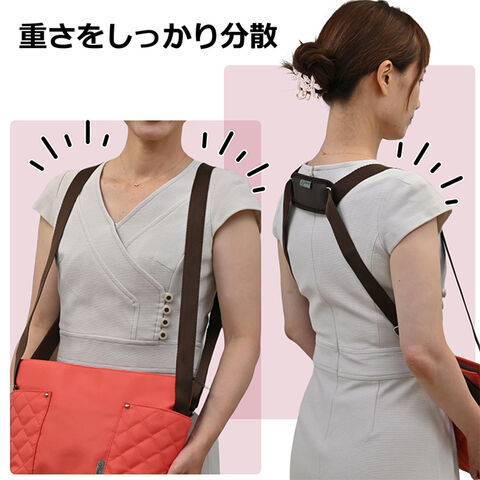 コアルーバッグならではの独自のストラップ構造で、バッグが体にフィットし、肩や腕への負担を軽減。