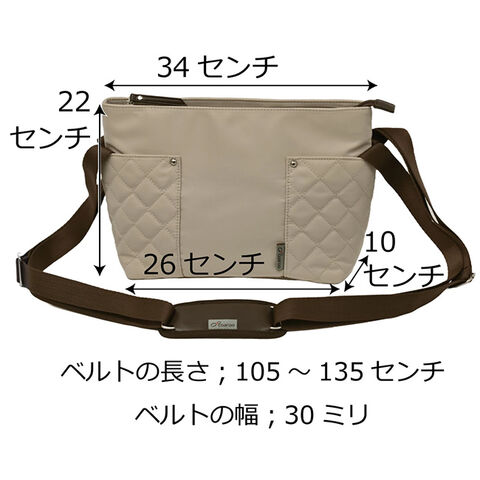 【サイズ(約)】幅26cm(開口部34cm) 高さ22cm マチ10cm ベルト長さ105~135cm ベルトの幅30mm