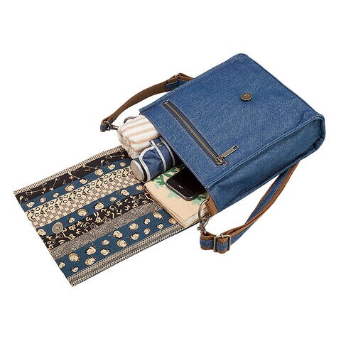 丈夫で上質な10オンスの備後産デニムを使用し、使い込むほどに風合いが増していくショルダーバッグ。