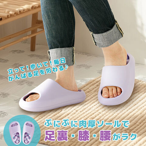 【L(24.5-25.0cm)】腰らくルームサンダル パープル(健康サンダル レディース 健康サンダル室内 足裏 マッサージ 室内履き オフィス)※1枚目の画像は代表イメージのため色・柄が異なる場合がございます。2枚目以降で色・柄をご確認下さい。