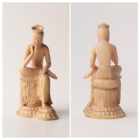 素材には、繊細な彫刻に最適とされる「黄楊(ツゲ)」を採用。手のひらサイズながら、実物仏像の持つ気品とバランスを忠実に再現しています。