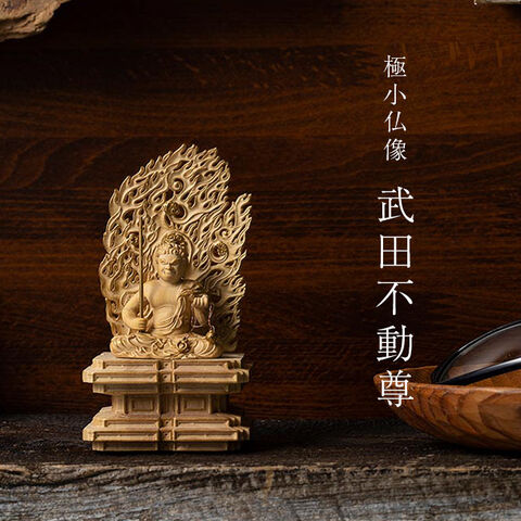 極小仏 武田不動尊(武田信玄 不動明王 不動明王像 不動明王仏像 ミニ 仏像 木彫 フィギュア オブジェ 置物 玄関 お守り)