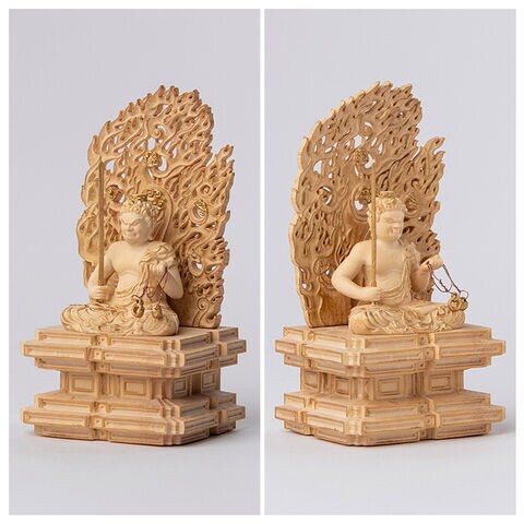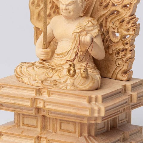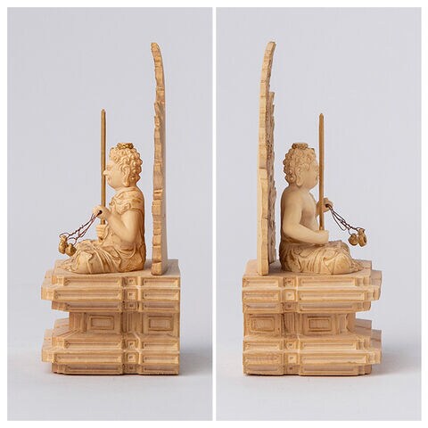 素材には、繊細な彫刻に最適とされる「黄楊(ツゲ)」を採用。手のひらサイズながら、実物仏像の持つ気品とバランスを忠実に再現しています。