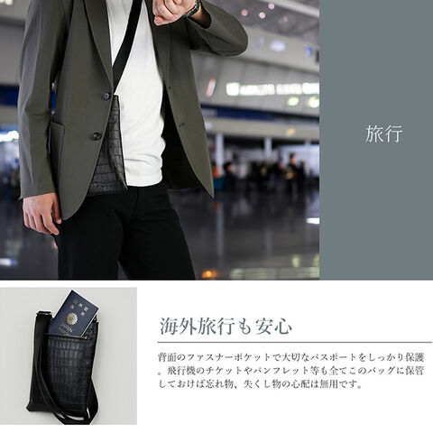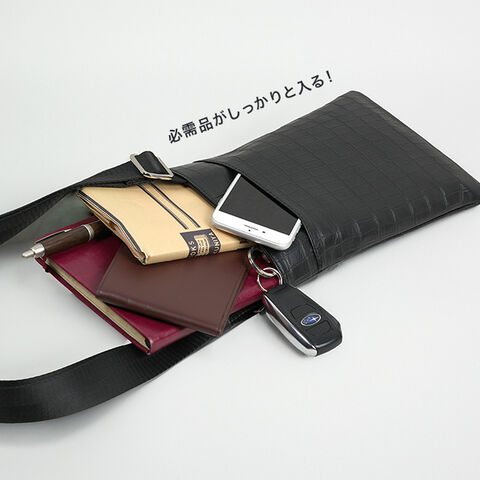 クロコ型押しの本革が放つ上品な存在感。それでいて驚くほど軽やか&柔らか。まるで、着るポケットのような感覚で持てる、牛革ポシェットです。
