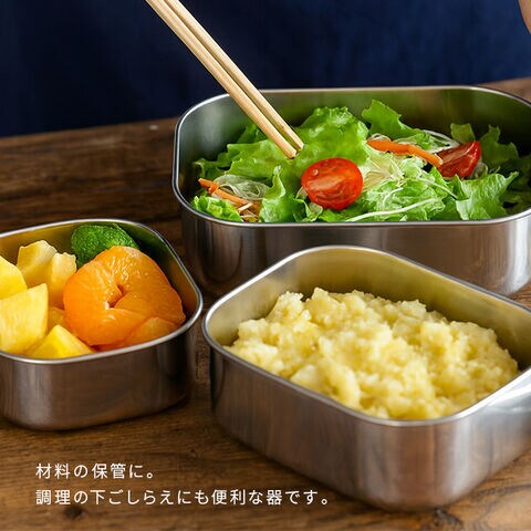 ・作り置きのおかずやサラダ、漬物などの保存はもちろん、肉や魚を漬け込むバット代わりにも。