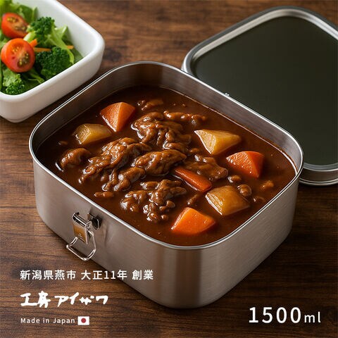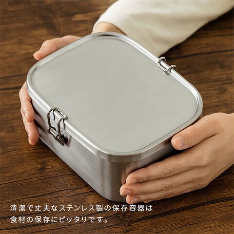 工房アイザワ 保存容器 角形 UTILE 1500ml 止金付き 417357(ステンレス 保存容器 日本製 ステンレス容器 蓋付き保存容器)