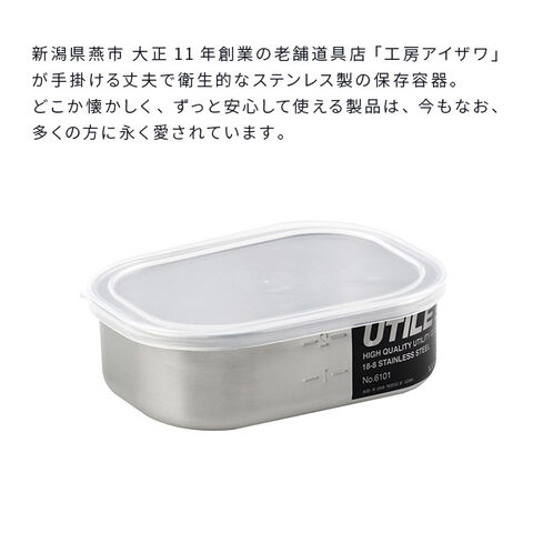 工房アイザワ ステンレス保存容器 角形 UTILE 400ml 浅型 密閉蓋 435371(ステンレス 保存容器 日本製 ステンレス容器)