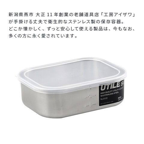 工房アイザワ ステンレス保存容器 角形 UTILE 750ml 浅型 密閉蓋 435372(ステンレス 保存容器 日本製 ステンレス容器)