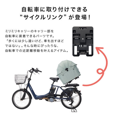 ミリミリキャリー専用の自転車に取り付けできるパーツ「サイクルリンク」。