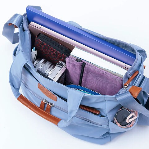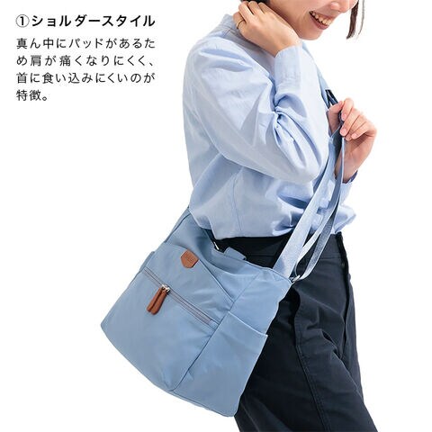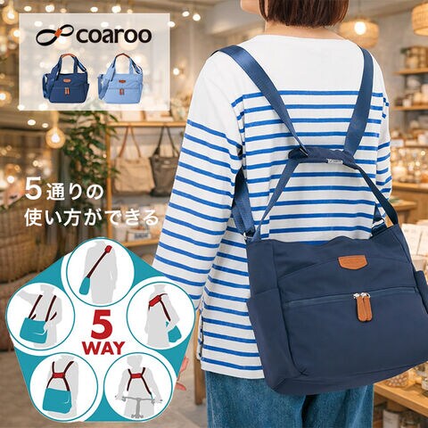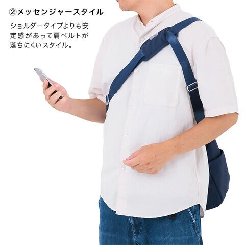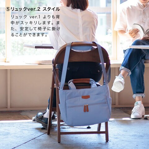 ・トート、ショルダー、リュック、前抱え、メッセンジャーの5通りで、シーンに合わせて使い分け。