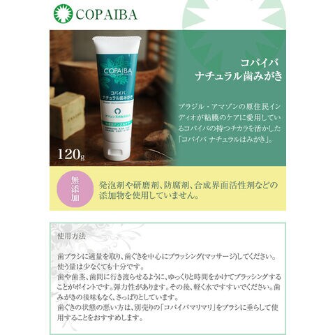 即納 コパイバ ナチュラル歯みがき 120g(無添加 歯みがき粉 ハミガキ粉 お口ケア 歯茎 健康 おすすめ コパイバ歯磨き 歯ぐきケア 歯磨き粉 マウスケア用品 無添加歯磨き粉 歯みがきこ 人気 チューブ)