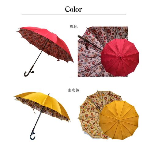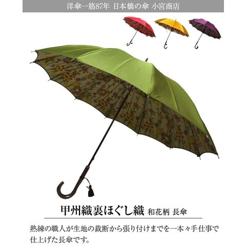 【紅色】小宮商店 甲州織裏ほぐし織 和花柄 長傘(婦人 女性 レディース 傘 ファッション 小物 かさ 雨具 花柄)※1枚目の画像は代表イメージのため色・柄が異なる場合がございます。2枚目以降で色・柄をご確認下さい。