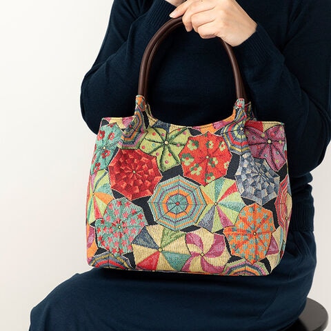 ゴブラン織りの軽量ハンドバッグ アンブレラ(ハンドバッグ レディース 日本製 軽量 軽い おしゃれ 手提げバッグ 手提げかばん 手提げ鞄 手提げカバン 手提げ バッグ 40代 50代 60代 70代 ゴブラン織り ゴブラン 柄 おでかけ 普段使い)