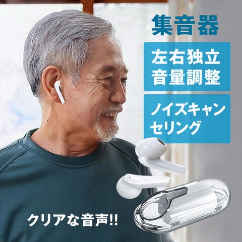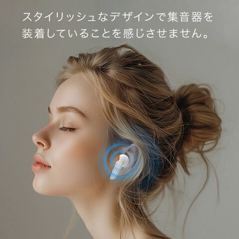 クリアーサウンドF(充電式 集音器 高齢者 使いやすい イヤホン 両耳 小型 ホワイト 白 おしゃれ 軽量 コンパクト 集音機 聞こえ 聴こえ ノイズキャンセリング 会話 コミュニケーション しゅうおんき)