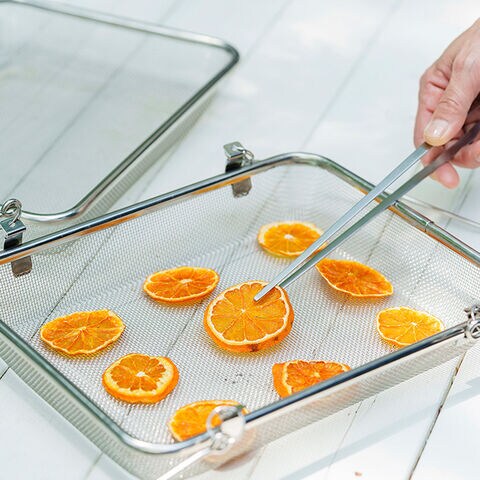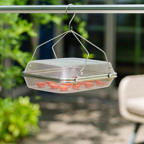果物や野菜、きのこなどを自然の力でやさしく乾かせる、シンプルで清潔な1段タイプの干しかごです。