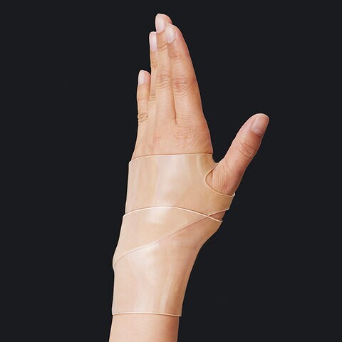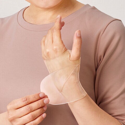 日々の水仕事でも手首使いやすい透明の腱鞘炎サポーター。