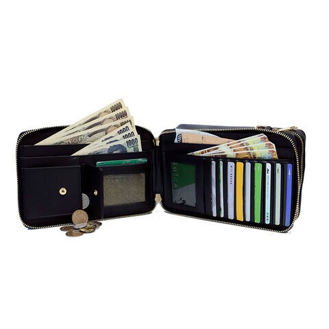 【仕様】[外部]メインポケット・前面ファスナーポケット・開閉式ラウンドファスナーポケット [内部]カードポケット各種・小銭・お札入れ