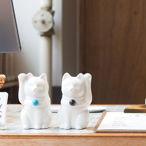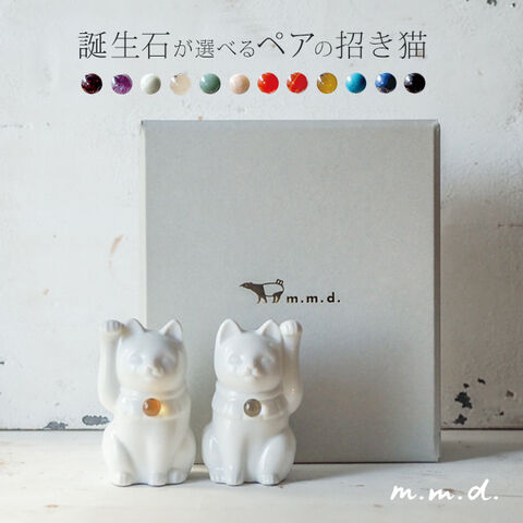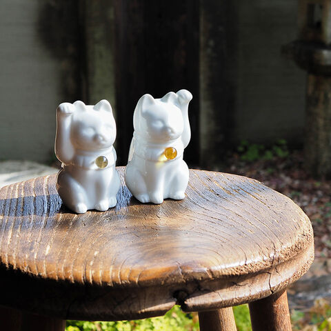 瀬戸焼の伝統技術で丁寧に作られた本物の招き猫で、首元の天然石は12種類から自由にお選び頂けます。