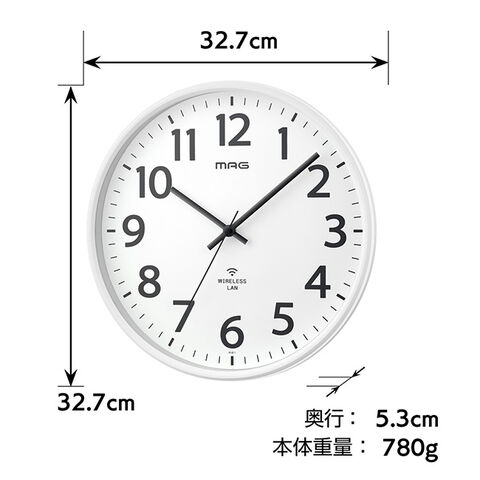 【F】MAG 無線LAN アナログ掛時計 シグナルキーパー W-811(掛け時計 かけ時計 シンプル 静か 秒針 停止 機能 寝室 マンション アパート オフィス 鉄筋コンクリート 時間がずれない 電波が届かない場所)