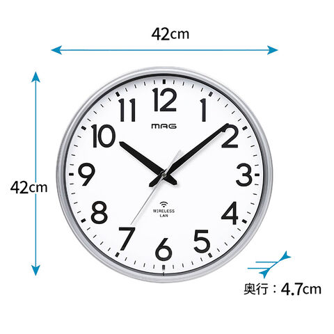 即納 MAG 無線LAN掛時計 直径42cm(大きい 見やすい 壁掛け 時計 Wi-Fi時計 掛け時計 アナログ 40cm 大型 Wi-Fi シンプル)