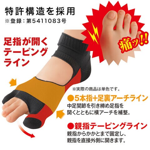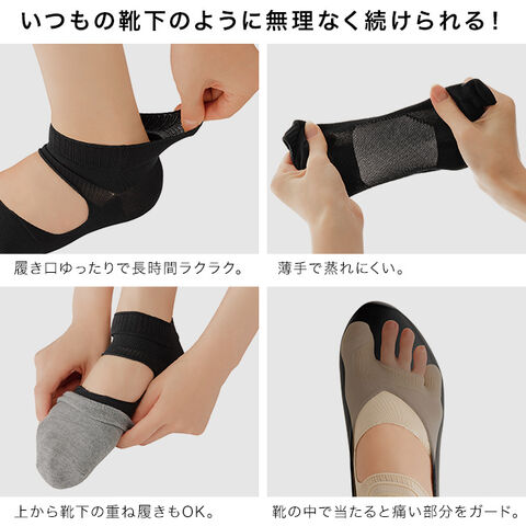 ・靴下のような履き心地で、外反母趾/内反小趾/扁平足をやさしくサポートします。