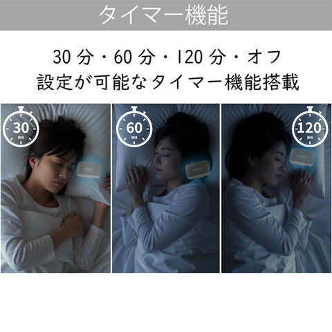 ・本体単体でホワイトノイズなど6種の自然音を再生。