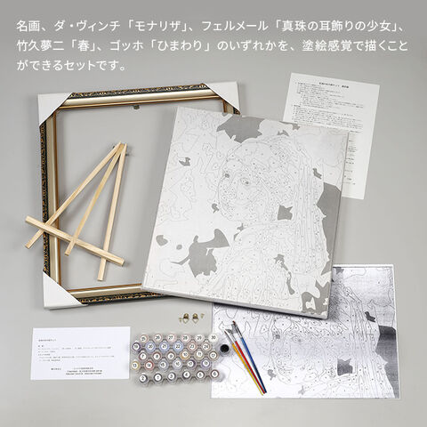 【セット内容】キャンバス、ペイント、筆(細筆3本)、額縁、卓上イーゼル、取扱説明書