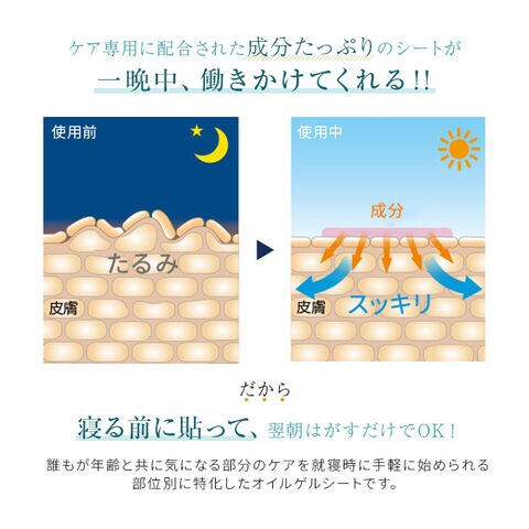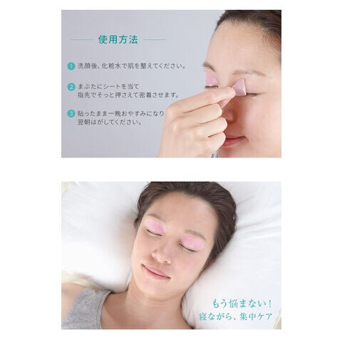 寝る前にまぶたに貼り、翌朝はがすだけの簡単集中スキンケア。まぶたに合わせた形状のシート。