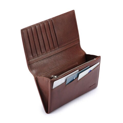 お札の収納角度を考慮した横幅18cmの新設計。従来より1.5cm小型化しつつ、収納力はそのままに、薄く持ちやすいサイズ感を実現。スタイリッシュで実用的な長財布で、スマートなライフスタイルをサポート。
