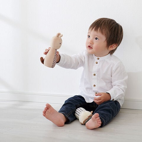 やさしい肌触りの布製で、赤ちゃんも安心して遊べます。動物モチーフのピンがかわいらしく、初めてのおもちゃにぴったり。