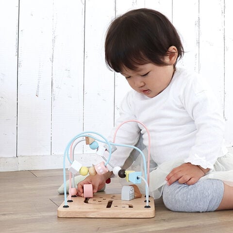 ワイヤーに通ったビーズを指先でつまんで動かす、シンプルで人気のルーピング。ビーズの動きに合わせて「鳥さんが飛んでいくよ!」など声をかけながら遊べるので、お子さまの想像力を広げやすいおもちゃです。