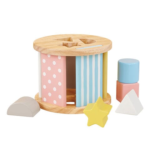 丸、三角、四角、星など、さまざまな形のブロック付き。ブロックを型にはめたり、積み木のように遊んだりと遊び方が広がります。