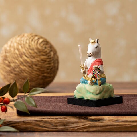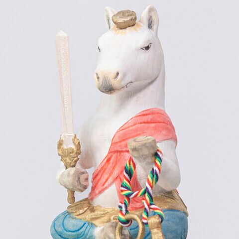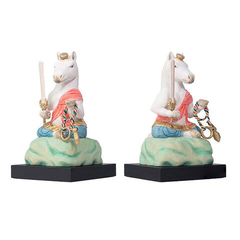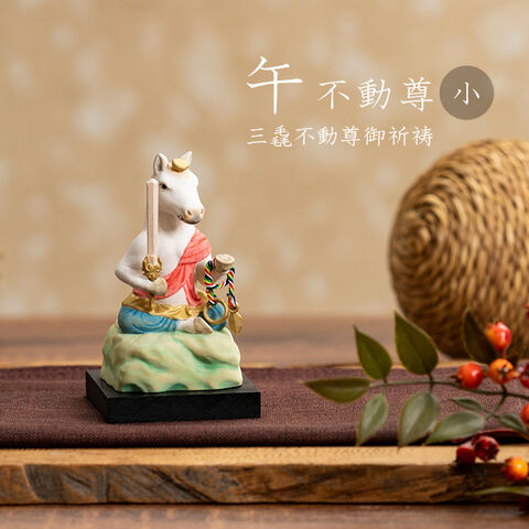 午不動尊は、その勇壮な馬の姿に不動明王の威厳を重ね合わせたご尊像です。燃えるような赤い袈裟と、手にした剣や羂索(けんさく)は、迷いや悪縁を断ち切り、良縁と繁栄を招く象徴。午年生まれの方の守り本尊としてはもちろん、勝負運を願う方、新しい挑戦に向かう方への贈り物にもふさわしい逸品です。