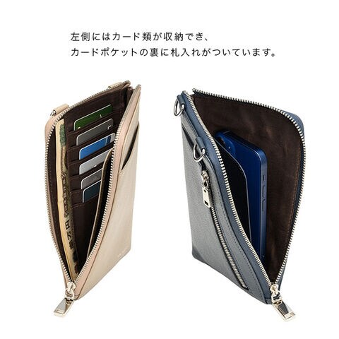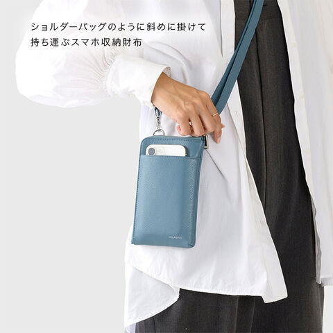 ・スマートフォン収納と財布機能を一体化したショルダー型携帯ウォレット。