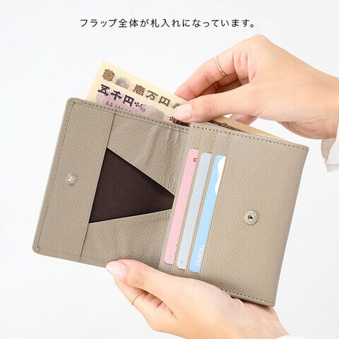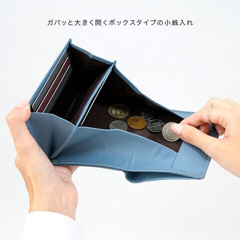 ・コンパクトな二つ折り財布ながら、ガバッと大きく開く設計。
