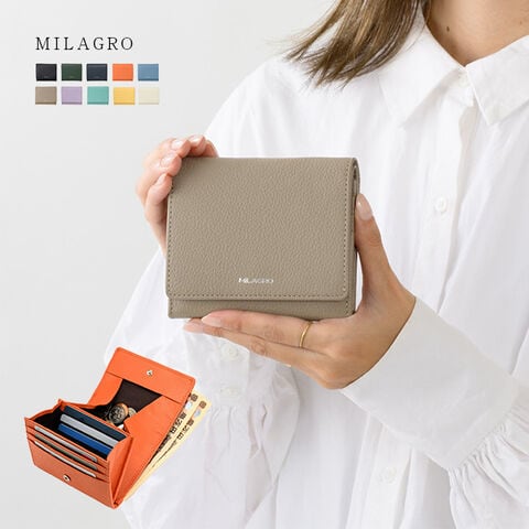 【イエロー】 MILAGRO シュリンクレザー ギャルソン2つ折り財布(二つ折り財布 ミニ財布 レディース メンズ 薄い 本革 財布 小さい)※1枚目の画像は代表イメージのため色・柄が異なる場合がございます。2枚目以降で色・柄をご確認下さい。