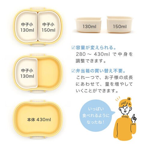【容量(約)】[本体]430ml [中子小]130ml [中子大]150ml