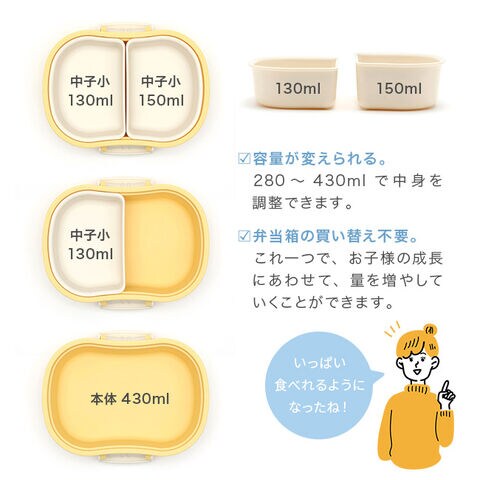 【容量(約)】[本体]430ml [中子小]130ml [中子大]150ml